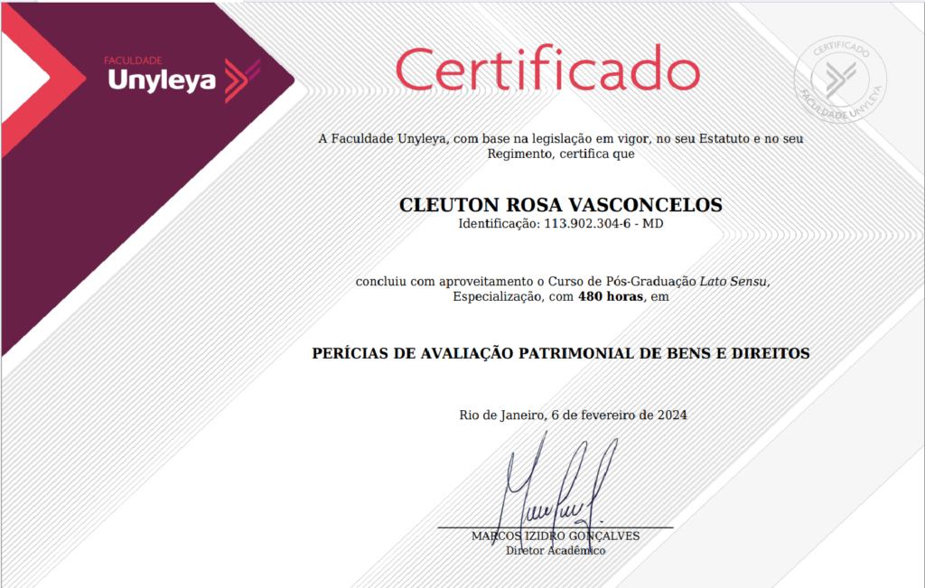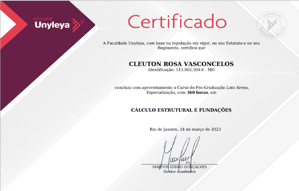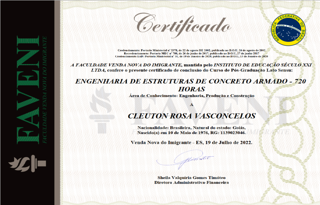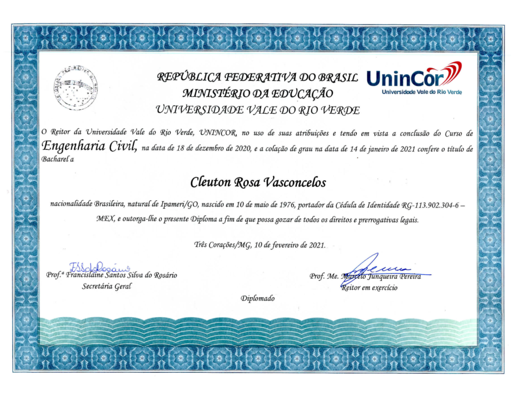 “Possuo graduação em Engenharia Civil pela Universidade Vale do Rio Verde (2021) e em Tecnologia em Análise e Desenvolvimento de Sistemas pelo Instituto Federal de Educação, Ciência e Tecnologia Goiano – Campus Urutaí (2006). Tenho experiência na área de Engenharia Civil, com ênfase em estruturas metálicas, concreto armado e fundações. Atuo como perito em avaliações de bens e direitos.”